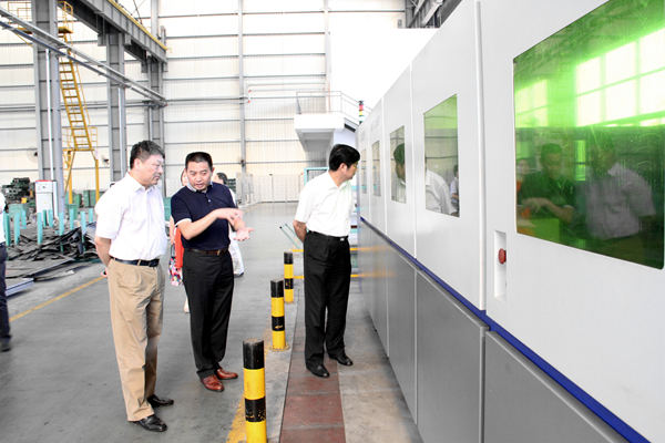 7月12日下午,市政協(xié)副主席華艾一行來我公司開展調(diào)研,市委統(tǒng)戰(zhàn)部副部長、市工商聯(lián)黨組書記、第一副主席羅勇,市政協(xié)副秘書長、辦公廳主任程習龍,包河區(qū)委統(tǒng)戰(zhàn)部副部長、區(qū)工商聯(lián)黨組書記、副主席史道云等陪同調(diào)研。雖然戶外熱浪滾滾,炎炎烈日,華主席一行來到公司先深入鉚焊車間、沖壓三車間進行實地參觀。