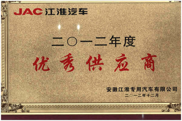 2012年度江淮專用車“優(yōu)秀供應(yīng)商”