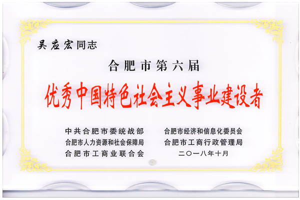 熱烈祝賀吳應(yīng)宏董事長榮獲“合肥市第六屆優(yōu)秀中國特色社會(huì)主義事業(yè)建設(shè)者”榮譽(yù)稱號