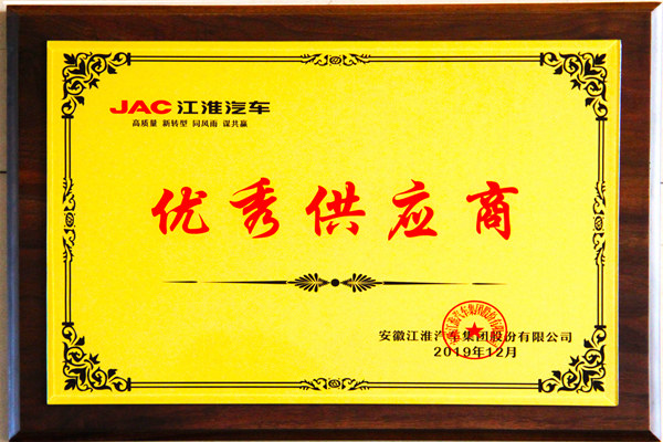 熱烈祝賀公司榮獲江淮汽車2019年度“優(yōu)秀供應(yīng)商”稱號