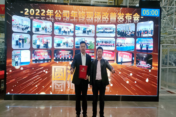 2月15日下午,由合眾公司生產(chǎn)管理中心主辦、南寧工廠承辦的第七屆(2022年)現(xiàn)場改善發(fā)布會,在合眾南寧工廠總裝車間隆重舉行,合眾新能源汽車有限公司聯(lián)席總裁孔繁龍、CFO陳睿、副總裁林偉義及三個基地的相關(guān)領(lǐng)導(dǎo)共同出席發(fā)布會。常嘉公司作為400余家供應(yīng)商體系中唯一一家供應(yīng)商代表參加本次發(fā)布并榮獲二等獎,常嘉公司總經(jīng)理陳繼勝、調(diào)度王宇星參加了本次改善發(fā)布會。