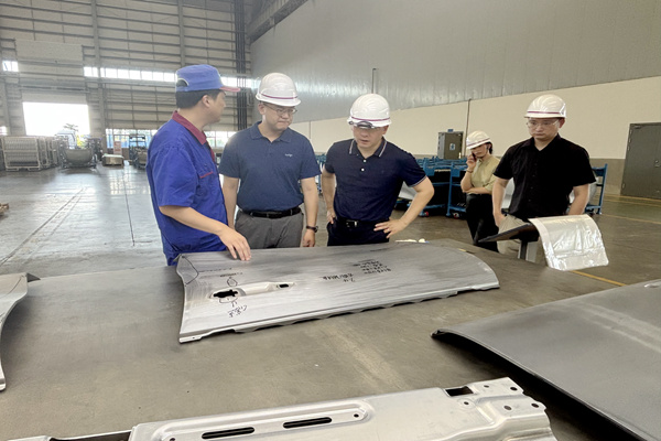 調(diào)研期間,在制造總經(jīng)理何永志的陪同下,李豐總監(jiān)先后深入生產(chǎn)一線,實(shí)地考察了常盛公司的自動化焊裝生產(chǎn)線、新港大沖自動化沖壓線,以及常匯公司的輥壓生產(chǎn)線和蕪湖常瑞公司的焊裝、沖壓生產(chǎn)線。每到一處,李豐總監(jiān)都仔細(xì)察看設(shè)備運(yùn)行狀態(tài),詳細(xì)詢問生產(chǎn)工藝參數(shù)、質(zhì)量管控標(biāo)準(zhǔn)及產(chǎn)能規(guī)劃情況,對常青股份在智能制造領(lǐng)域的投入與成果給予高度評價。