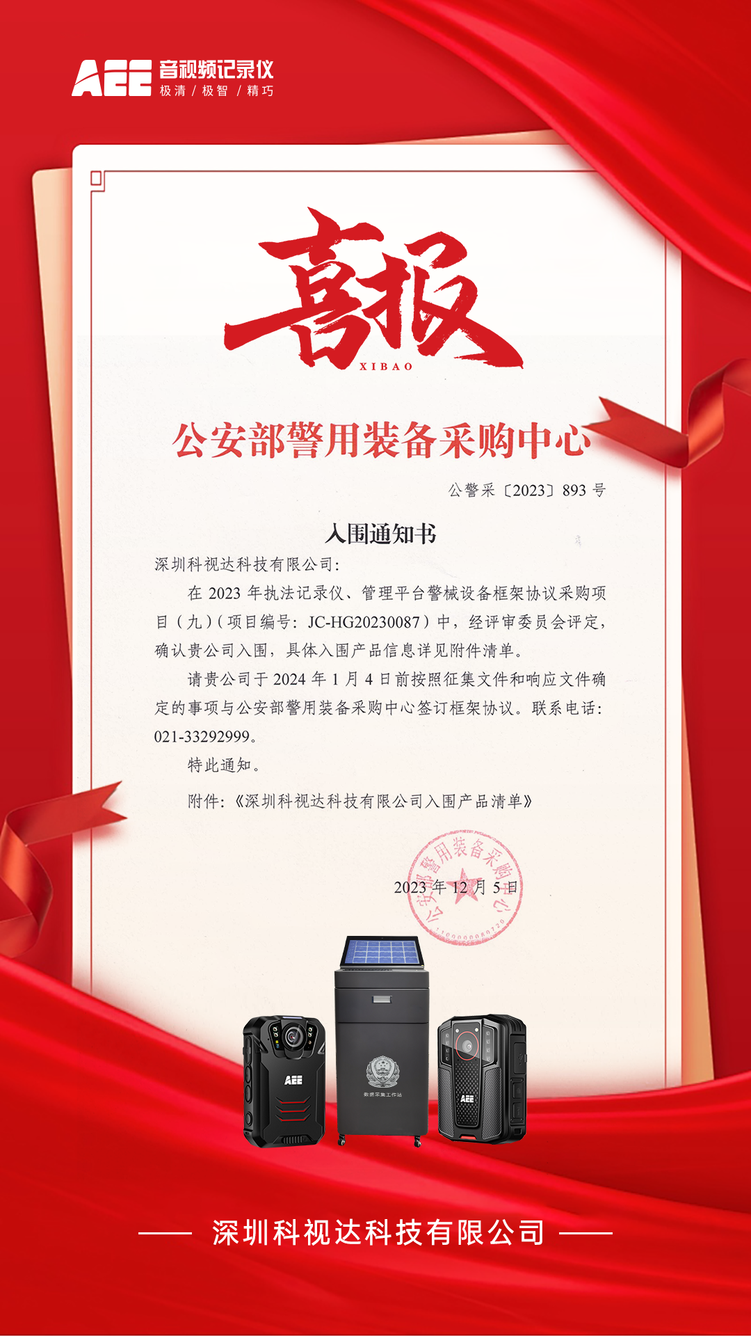 喜報 | AEE執(zhí)法記錄儀成功入圍公安部012項目協(xié)議供貨目錄!