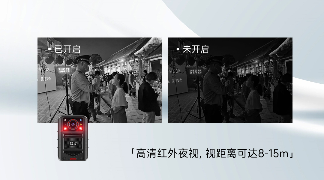 此外,考慮到執(zhí)勤人員在工作環(huán)境和工作時間方面,面對昏暗區(qū)域采光不佳的情況下,夜視記錄至關(guān)重要。DSJ-K8內(nèi)置了2顆紅外LED燈,具有超強的夜視功能,在昏暗的環(huán)境下自動切換夜視模式,夜視距離能達到15米左右,借助執(zhí)法記錄儀的紅外夜視模式,執(zhí)勤人員可以洞察漆黑的夜間,更加從容地應(yīng)對突發(fā)情況,做出準確的判斷和決策,確保工作的順利進行。2300mAh雙電池配置,2*8h的超長續(xù)航能夠滿足全天候的工作需求。
