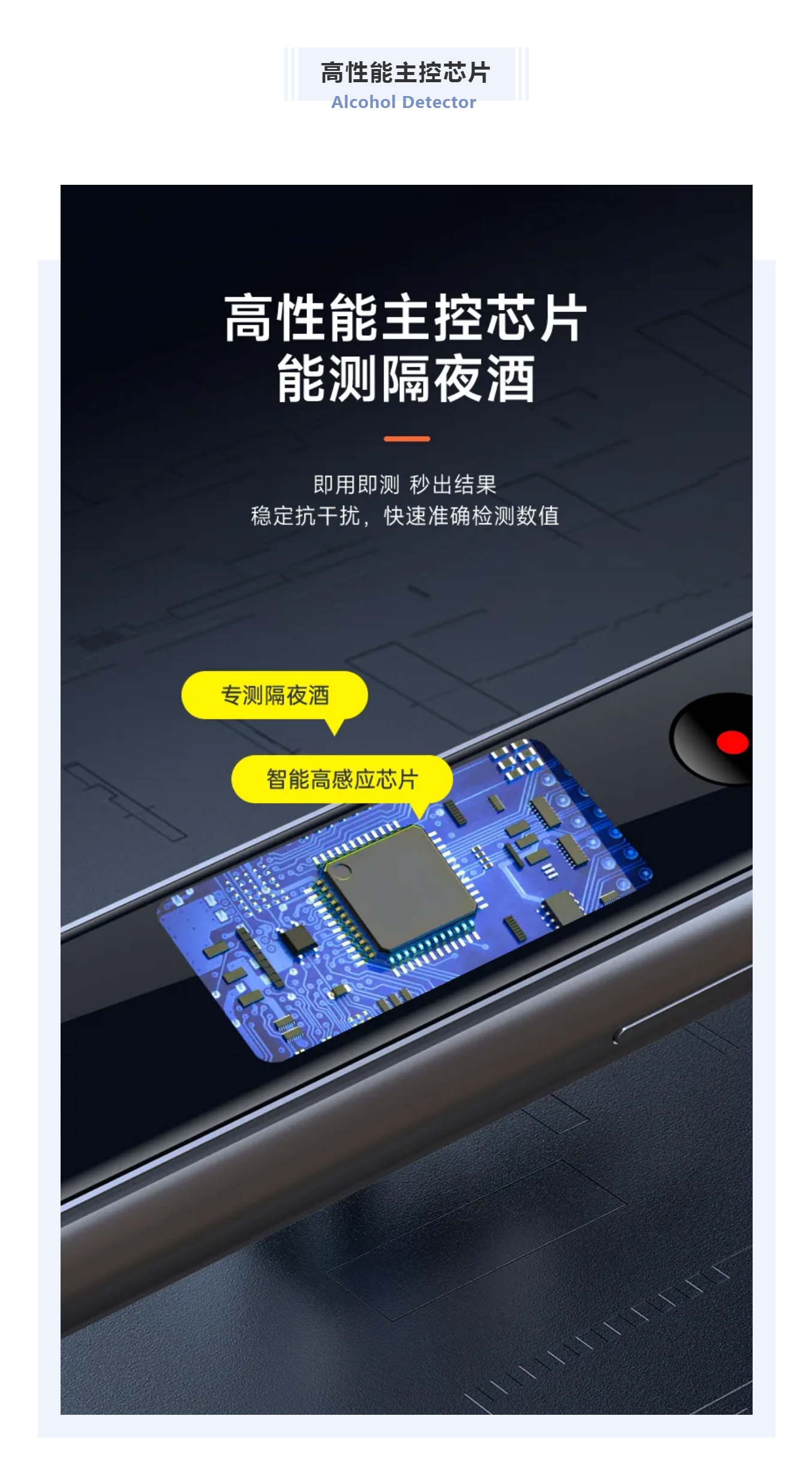 酒檢知音A1是一款高顏值、技術(shù)先進的產(chǎn)品,采用警用電化學傳感器,測量精度達1mg/100ml,能迅速準確測量呼吸中的酒精含量,吹氣5秒提供可靠檢測結(jié)果,輔助判斷是否適合駕車。同時,A1一次充電可測200次,具備語音播報和高清顯示屏,檢測結(jié)果一目了然,通過APP 可以查看歷史記錄并打印,精準高效實用,且無需定期校準。