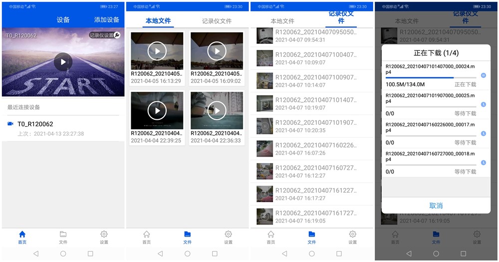 先來說一下記錄儀通過AEE小愛視訊APP進行查看吧,首先你要下載這個小愛視訊APP,而且必須要是安卓手機才可以,然后下載好之后,開機記錄儀,長按WIFI/視頻標記鍵3秒,此時WIFI指示燈藍色燈快速閃爍,這樣就可以進行連接了,步驟只要按照提示完成即可。當進入到AEE小愛視訊APP的主界面上,可以看到里面的操作也非常的簡單,有記錄儀文件和本地文件,記錄儀文件就是你攝錄的文件,你可以通過選擇的方式對有需要的文件進行下載在本地,這樣你就可以直接在手機查看了。