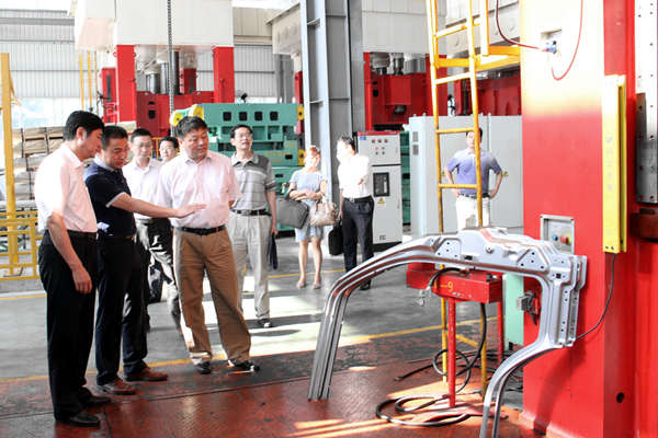 7月12日下午,市政協(xié)副主席華艾一行來我公司開展調(diào)研,市委統(tǒng)戰(zhàn)部副部長、市工商聯(lián)黨組書記、第一副主席羅勇,市政協(xié)副秘書長、辦公廳主任程習龍,包河區(qū)委統(tǒng)戰(zhàn)部副部長、區(qū)工商聯(lián)黨組書記、副主席史道云等陪同調(diào)研。雖然戶外熱浪滾滾,炎炎烈日,華主席一行來到公司先深入鉚焊車間、沖壓三車間進行實地參觀。