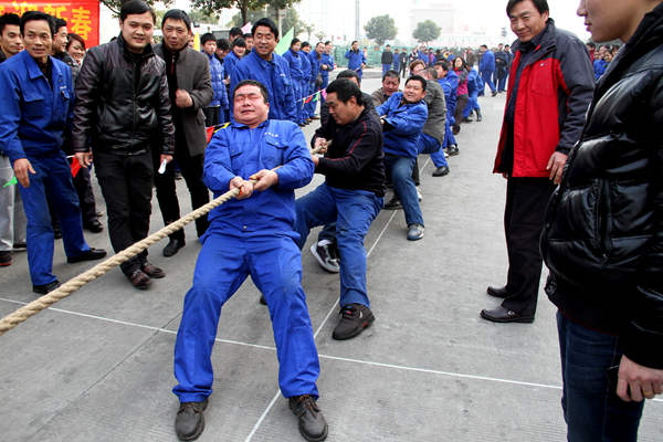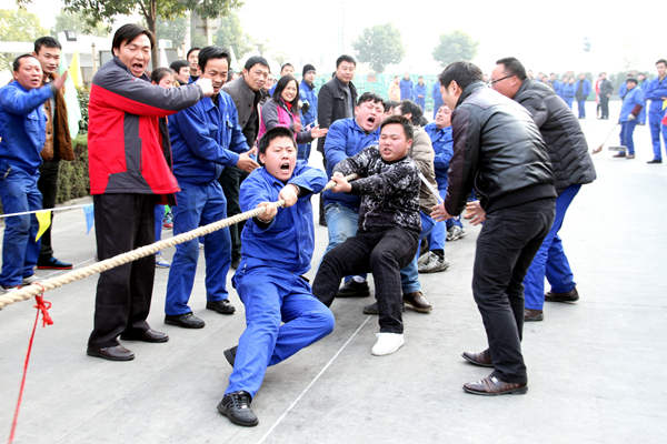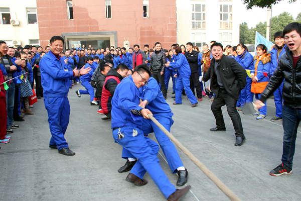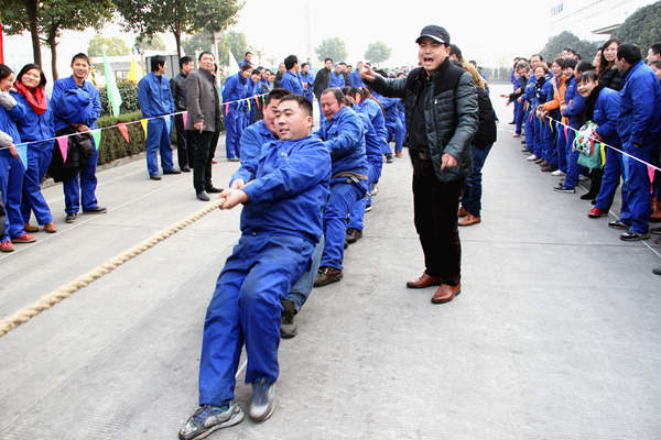 吳應舉總經理饒有興趣來到比賽現場,并親自擔當起裁判。下午2時45分,隨著總經理一聲號令,每支代表隊都顯示出最強的比賽陣容,齊心協力。參賽隊員們口中一起高呼著“一二,一二”,雙手緊握長繩,憋足了勁拼命往后拉。參賽隊領導也在隊伍旁邊助陣加油,恨不得抓起繩子跟員工一起努力。