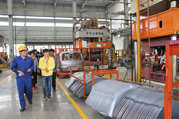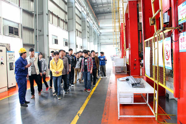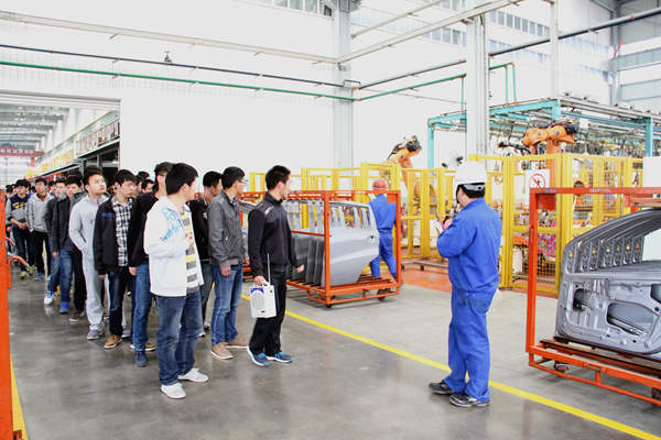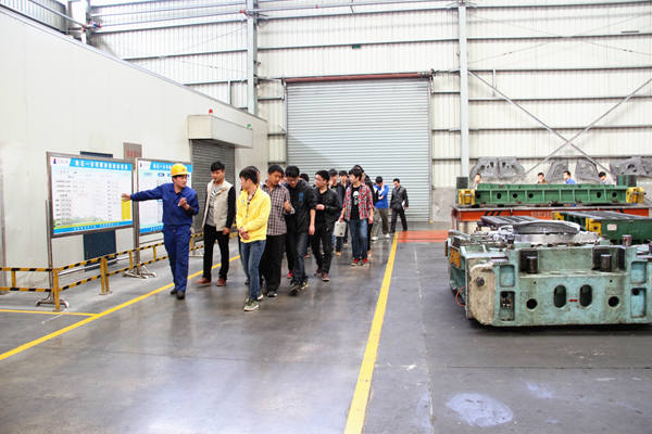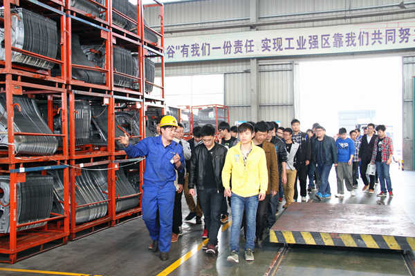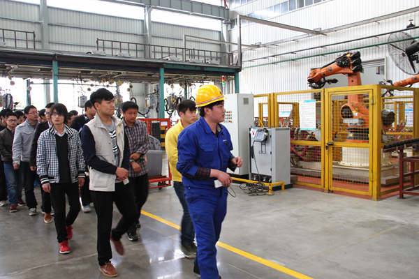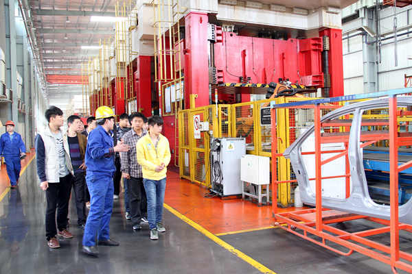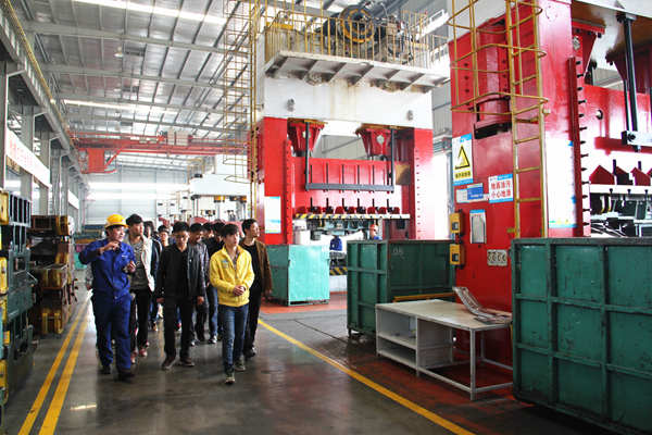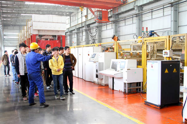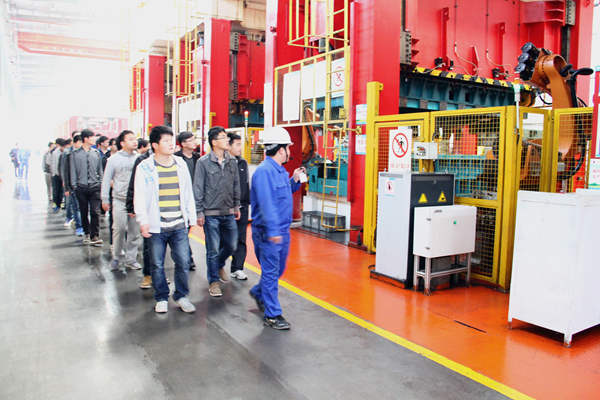 常青機械總公司總經(jīng)辦主任程義、人力資源部副部長張建等熱情地接待丁書記一行。期間,桃花分公司特別安排專業(yè)技術人員帶領學院學工組及專業(yè)教師、實習學員到包邊生產(chǎn)線、沖壓一車間、沖壓二車間進行實地學習,細致認真地向同學們介紹了江淮A30側(cè)圍板、CⅡ、瑞風等產(chǎn)品件生產(chǎn)線和自動化沖壓A線等先進設備的功能與使用情況及加工流程,使同學們對現(xiàn)代企業(yè)的生產(chǎn)模式有了直觀的了解,并不時為同學們解答各種疑問。