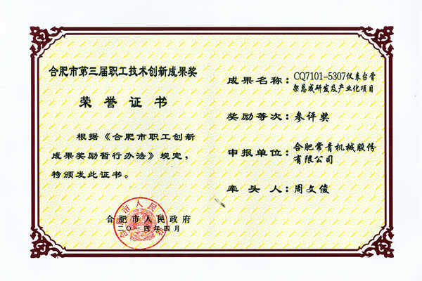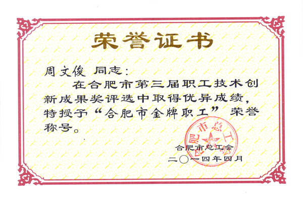 合肥市第三屆職工技術(shù)創(chuàng)新成果獎