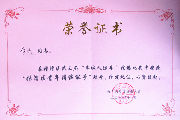 本次大賽的獲獎(jiǎng)選手黃興不僅獲得了張灣區(qū)政府、張灣區(qū)總工會(huì)的表彰,頒發(fā)榮譽(yù)證書及獎(jiǎng)金,常森公司還給予特別表彰。在全公司通報(bào)表彰同時(shí),要求全體員工以黃興為榜樣,向先進(jìn)看齊,努力提升素質(zhì),爭(zhēng)當(dāng)技術(shù)標(biāo)兵,在公司掀起“比學(xué)趕幫超”熱潮,激發(fā)員工“學(xué)技術(shù)、比技能、敬職業(yè)、愛崗位”的熱情,不斷創(chuàng)新,不斷進(jìn)取,為公司的發(fā)展做出貢獻(xiàn)。