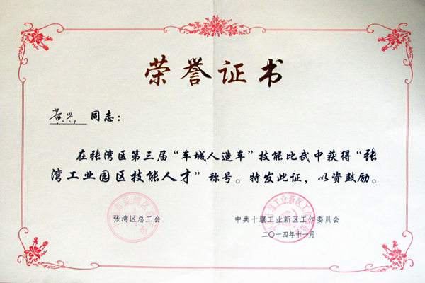 近日,十堰常森公司對(duì)在張灣區(qū)第三屆“車城人造車”職業(yè)技能大賽中獲獎(jiǎng)員工黃興給予特別獎(jiǎng)勵(lì)并全公司通報(bào)表彰。