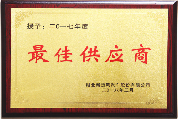 公司憑借準(zhǔn)時快捷的交付、滿意的服務(wù)、穩(wěn)定的質(zhì)量獲得了主機廠的認(rèn)可,被湖北新楚風(fēng)汽車股份有限公司評為2017年度“最佳供應(yīng)商”。