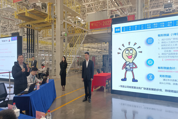 2月15日下午,由合眾公司生產(chǎn)管理中心主辦、南寧工廠承辦的第七屆(2022年)現(xiàn)場改善發(fā)布會,在合眾南寧工廠總裝車間隆重舉行,合眾新能源汽車有限公司聯(lián)席總裁孔繁龍、CFO陳睿、副總裁林偉義及三個基地的相關(guān)領(lǐng)導(dǎo)共同出席發(fā)布會。常嘉公司作為400余家供應(yīng)商體系中唯一一家供應(yīng)商代表參加本次發(fā)布并榮獲二等獎,常嘉公司總經(jīng)理陳繼勝、調(diào)度王宇星參加了本次改善發(fā)布會。