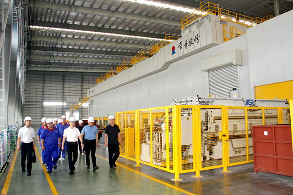 姚常委一行深入公司肥西新港基地自動(dòng)化沖壓生產(chǎn)線(xiàn)了解了生產(chǎn)情況,產(chǎn)品結(jié)構(gòu)及作業(yè)模式;