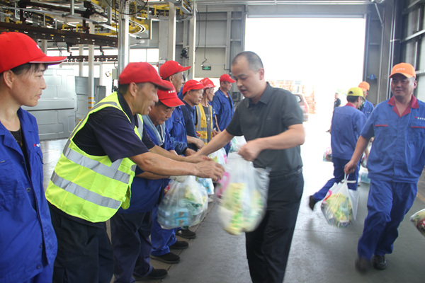 慰問過程中,工會主席程義親切地向大家說道:“我代表董事長和公司工會,向在高溫崗位上奮戰(zhàn)的各位一線員工表示誠摯的慰問。大家在忙碌工作的同時,一定要注意防暑降溫,既要保證生產(chǎn)任務(wù)的保質(zhì)保量完成,也要照顧好自己的身體。”