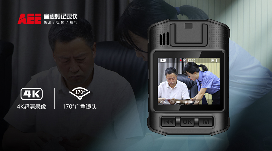 AEE DSJ-K5執(zhí)法記錄儀體積小、重量輕,攜帶方便,操作簡單,具有錄音、拍照、對講、錄像功能,擁有4K超清錄制+4800W拍照像素,快照功能可將4K視頻中的細節(jié)瞬間截取為同分辨率的高清照片,擁有F2.5超大光圈和170°超大廣角,采用防畸變拍攝技術(shù),帶來更多現(xiàn)場畫面,能夠清晰、準確、完整記錄執(zhí)法過程。內(nèi)置3000mAh鋰電池,外出執(zhí)勤可持續(xù)錄影長達12小時搭配512G大容量存儲空間,滿足執(zhí)法人員長時間工作和海量數(shù)據(jù)存儲的需求。